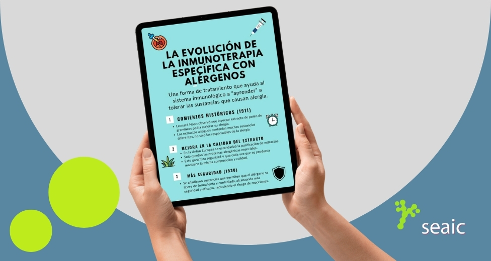 El Comité de Inmunoterapia de la Sociedad Española de Alergología e Inmunología Clínica (SEAIC) comparte una infografía divulgativa sobre la evolución de la inmunoterapia específica con alérgenos, desde sus inicios históricos hasta los avances actuales en seguridad, estandarización y personalización del tratamiento.