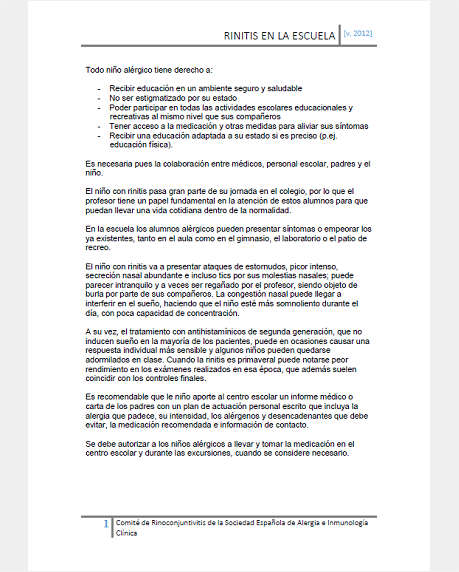 Pacientes Rinitis en la escuela 28 de septiembre de 2014 El Comité de Rinoconjuntivitis de la SEAIC ha publicado un documento con información sobre el manejo y las causas de la rinitis alérgica en la escuela. DESCARGAR