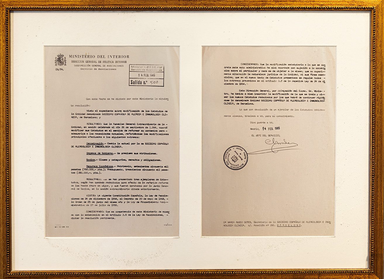 Modificación de estatutos de la SEAIC, ante el Ministerio de Interior 14/02/1985.