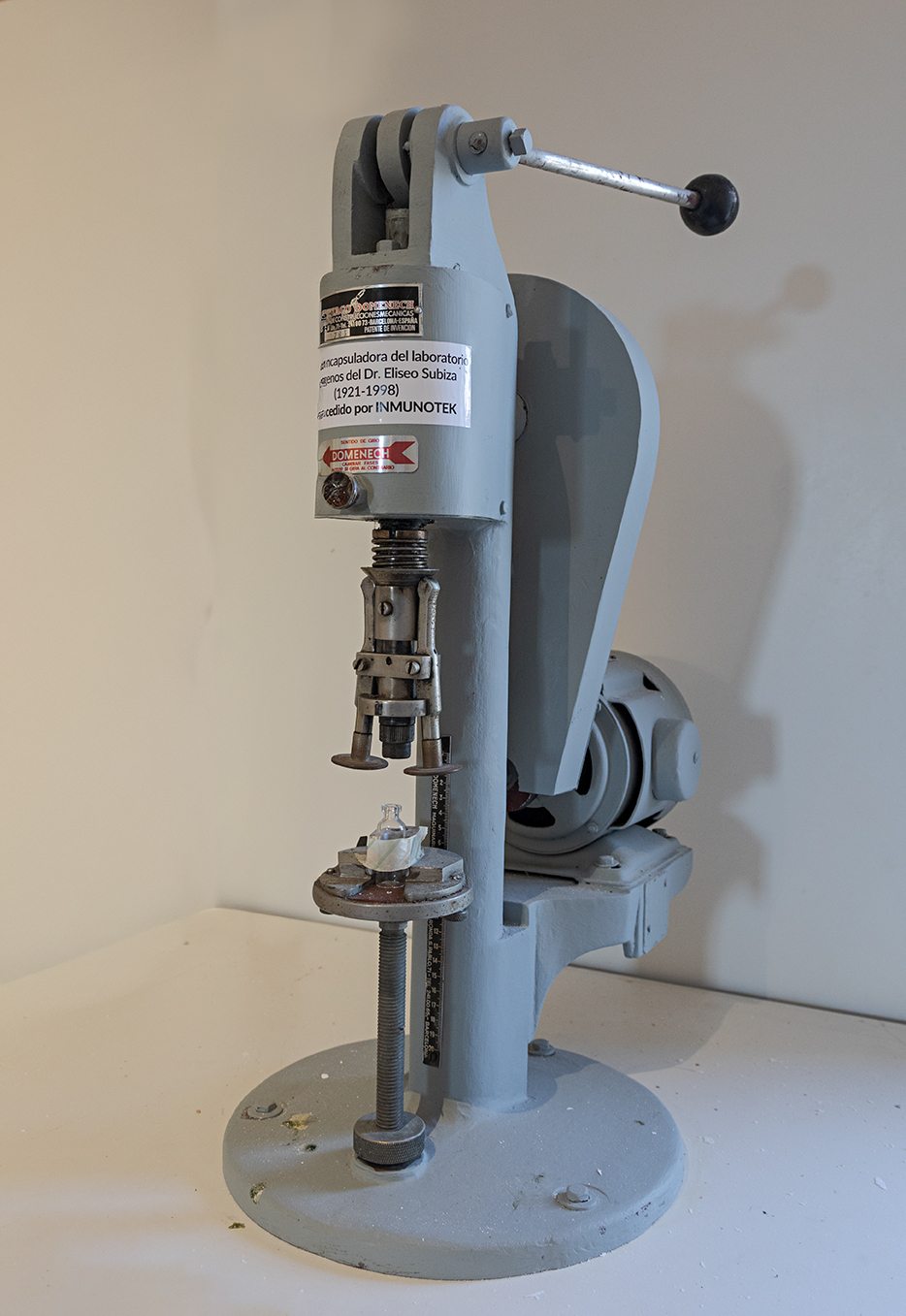 Maquina encapsuladora (1921-1998) Dr. Eliseo Subiza (cedido por Lab. Inmunotek)