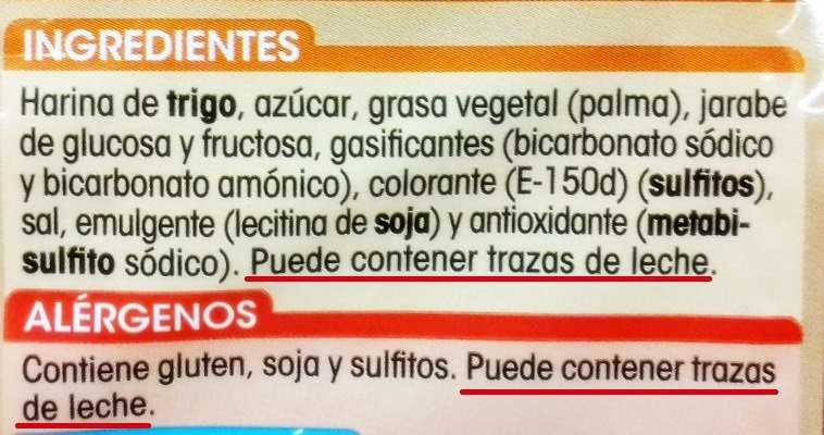 • Productos lácteos: todo tipo de quesos, yogures, mantequilla, nata, helados, batidos, cuajada, arroz con leche, requesón, algunas margarinas, crema agria, bollería (galletas, magdalenas, pasteles, donuts, etc.), turrón, chocolate con leche, potitos con leche, papillas de farmacia “lacteadas”, batidos de fruta que contengan leche, cereales preparados y precocidos con sólidos lácteos, caseína u otros productos lácteos añadidos.
