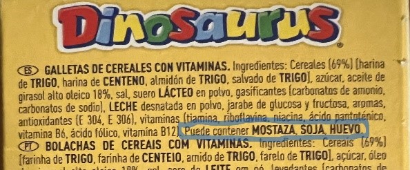 Es obligatorio que en la lista de ingredientes de estos alimentos se indique explícitamente que contiene HUEVO en su composición, y que se destaque del resto de la lista de ingredientes (en mayúsculas y en negrita).