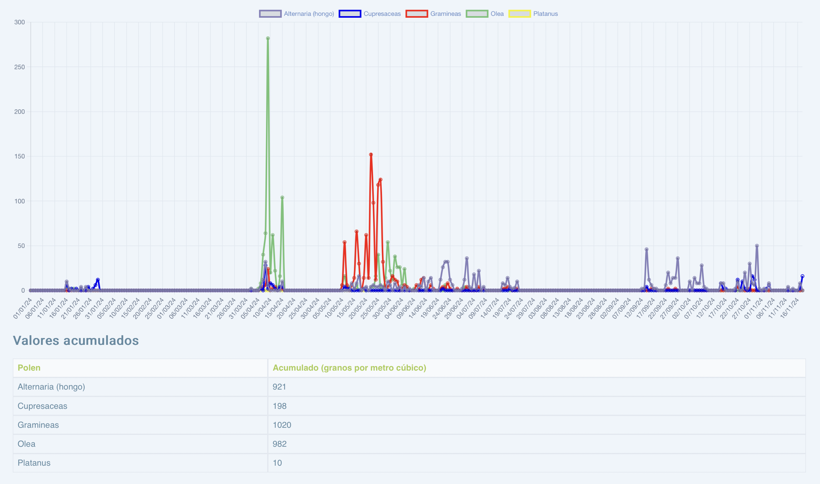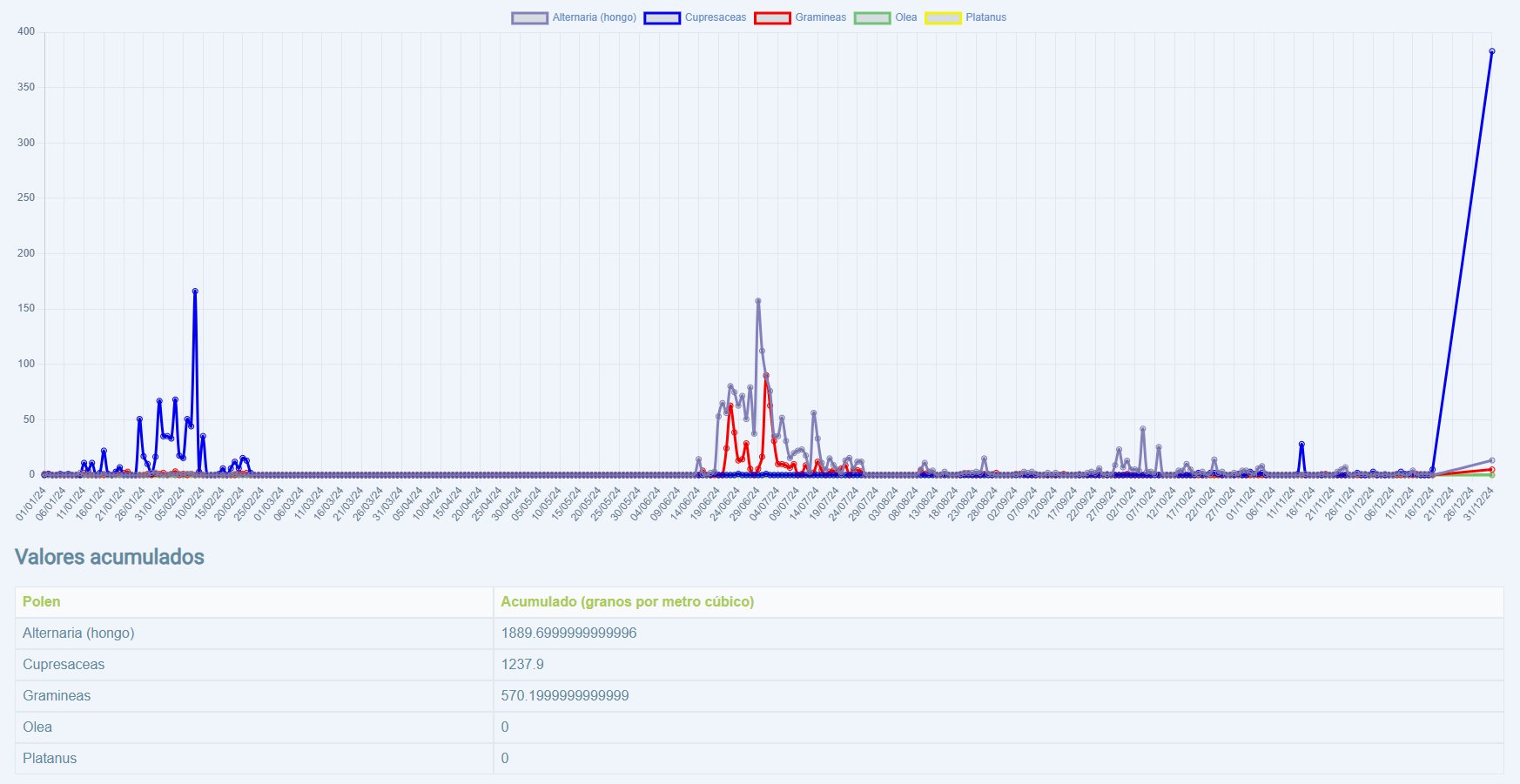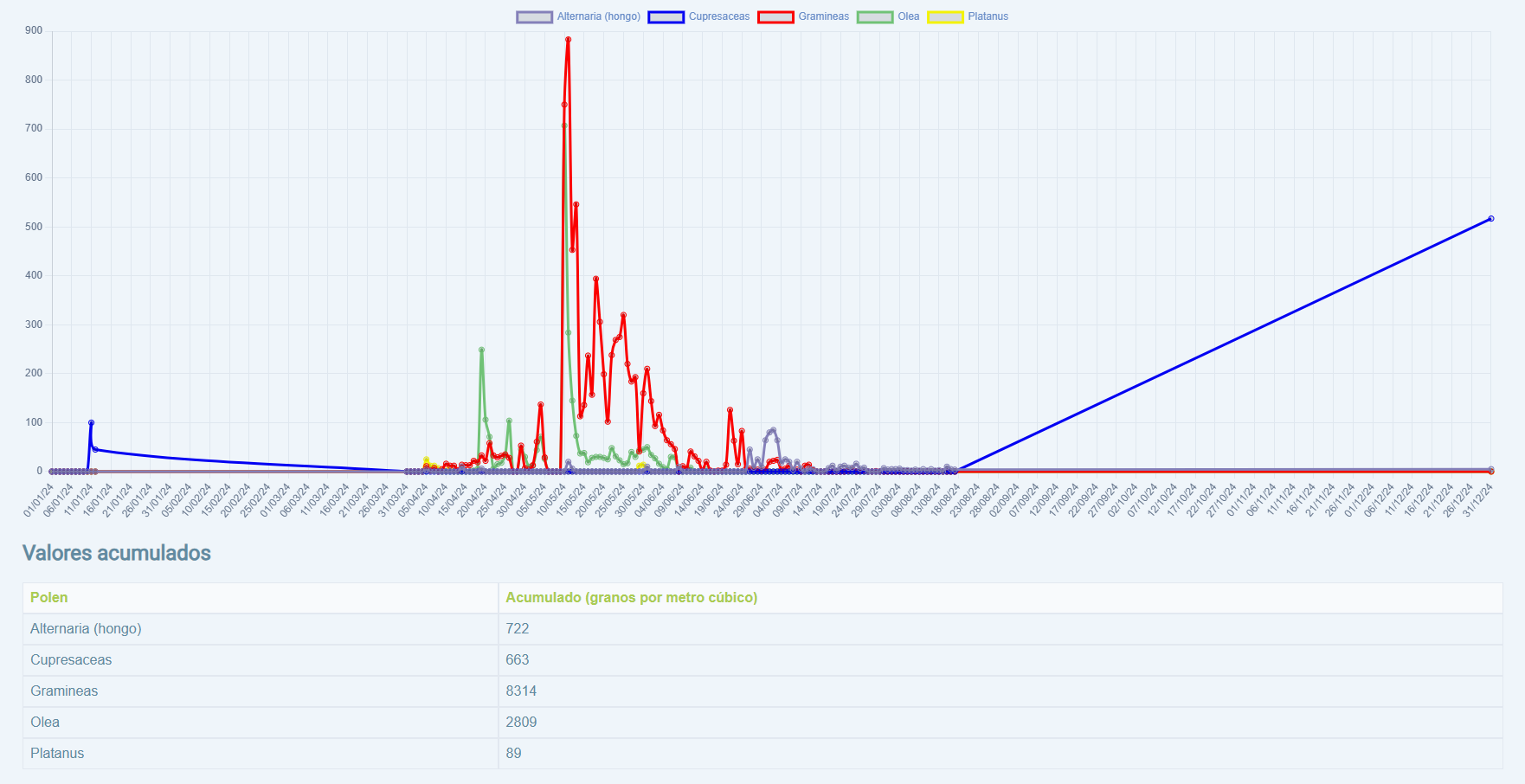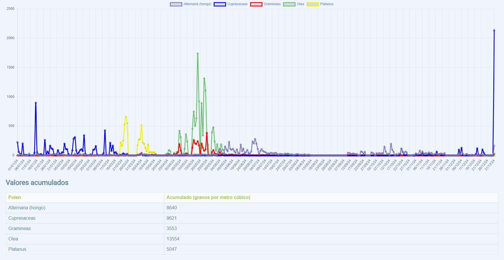 Desde el Hospital General Universitario de Ciudad Real, los doctores Alberto Palacios, Aranzazu Martin, Alba Extremera y Carmen García, nos proporcionan los datos a pólenes.com.