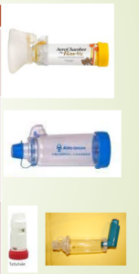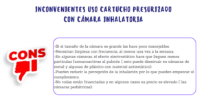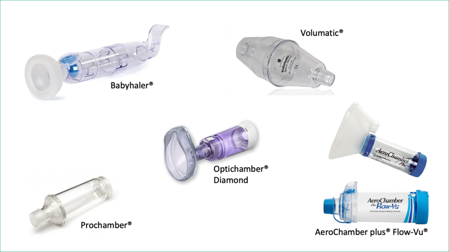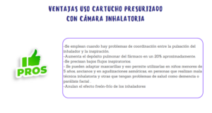 No son dispositivos de inhalación propiamente dichos, pero su utilización está ampliamente recomendada para evitar problemas relacionados con la técnica de los inhaladores de cartucho presurizado. Es un espaciador que separa la boquilla del cartucho presurizado de la boca del paciente. Por este motivo antiguamente se denominaban a estos aparatos “espaciadores” y hoy en día se utilizan ambos nombres de manera indistinta (cámaras de inhalación o cámaras espaciadoras)