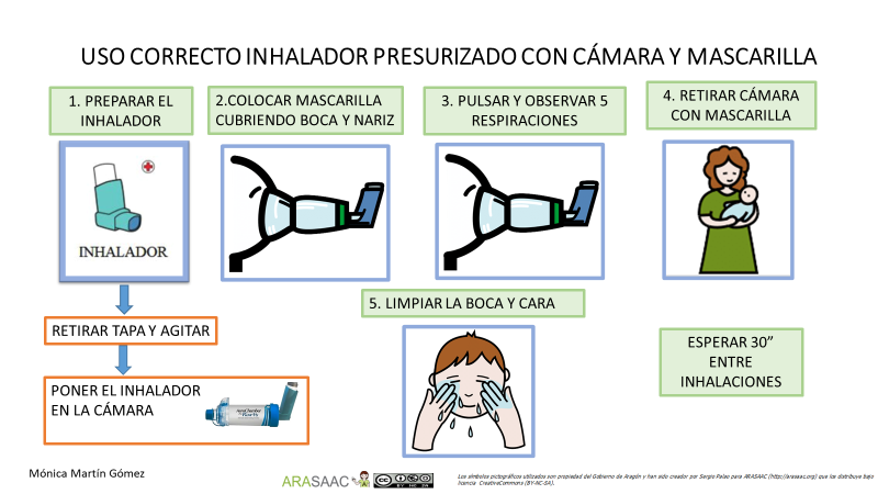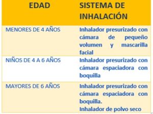 En el caso de los lactantes y menores de 5 años que no sepan realizar apnea, se usa una cámara de inhalación con mascarilla del tamaño adecuado para que se adapte a la cara del niño/a.