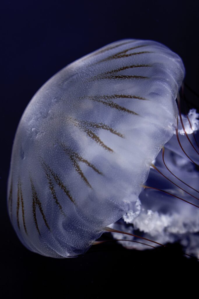 Estos invertebrados marinos tienen tentáculos largos donde se encuentran los nematocistos, que son una especie de cápsulas rellenas de veneno dotadas de un filamento en forma de arpón. En una sola picadura se descargan miles de éstos, lo que explica su gran efecto. La mayoría de las medusas solo causan síntomas locales, con dolor y/o ardor intenso en la zona de la picadura seguido de lesiones lineales con la impronta de los tentáculos. En casos más graves aparecen vesículas, equimosis y necrosis cutánea. Las manifestaciones generalizadas incluyen debilidad, náuseas, cefaleas, mialgias, alteraciones cardiacas o pulmonares. Los casos mortales son poco frecuentes. El tratamiento de las reacciones locales leves consiste en evitar la fricción en la zona, eliminar los restos de los tentáculos que puedan quedar adheridos, aclarar con agua salina y sumergir la zona afectada en agua caliente para aliviar el dolor.