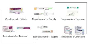 Imagen 1. Ejemplo de fármacos biológicos utilizados en alergología en la actualidad