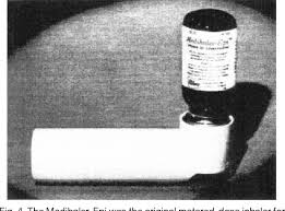El primer inhalador de cartucho presurizado surgió en el año 1956, a raíz de la insistencia de la hija asmática del doctor George Maison que le solicitaba un inhalador cómodo y portátil. Éste tenía un mecanismo valvular para dispensación de fluidos por medio de un propelente. Con el tiempo sería empleado en medicina pero también en cosmética (desodorantes, espuma de afeitar, etc) le denominaron Medihaler. Su éxito fue inmediato. Era un aparato ligero, portátil y que siempre administraba dosis fijas que venían medidas de fábrica. Su inicio de acción era rápido y cómodo de usar en cualquier lugar. Su principal desventaja era la coordinación de la inspiración con la activación del aparato.