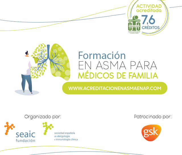 Ya está disponible el curso SEAIC de acreditación en asma, dirigido a médicos de atención primaria. Está organizado por SEAIC y cuenta con el patrocinio de GSK. Se puede acceder haciendo click sobre la imagen superior.