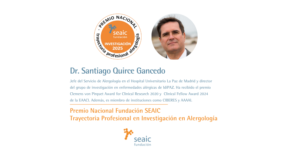 • Dr. Santiago Quirce Gancedo, Premio Nacional Fundación SEAIC a la Trayectoria Profesional en Investigación en Alergología 2024.