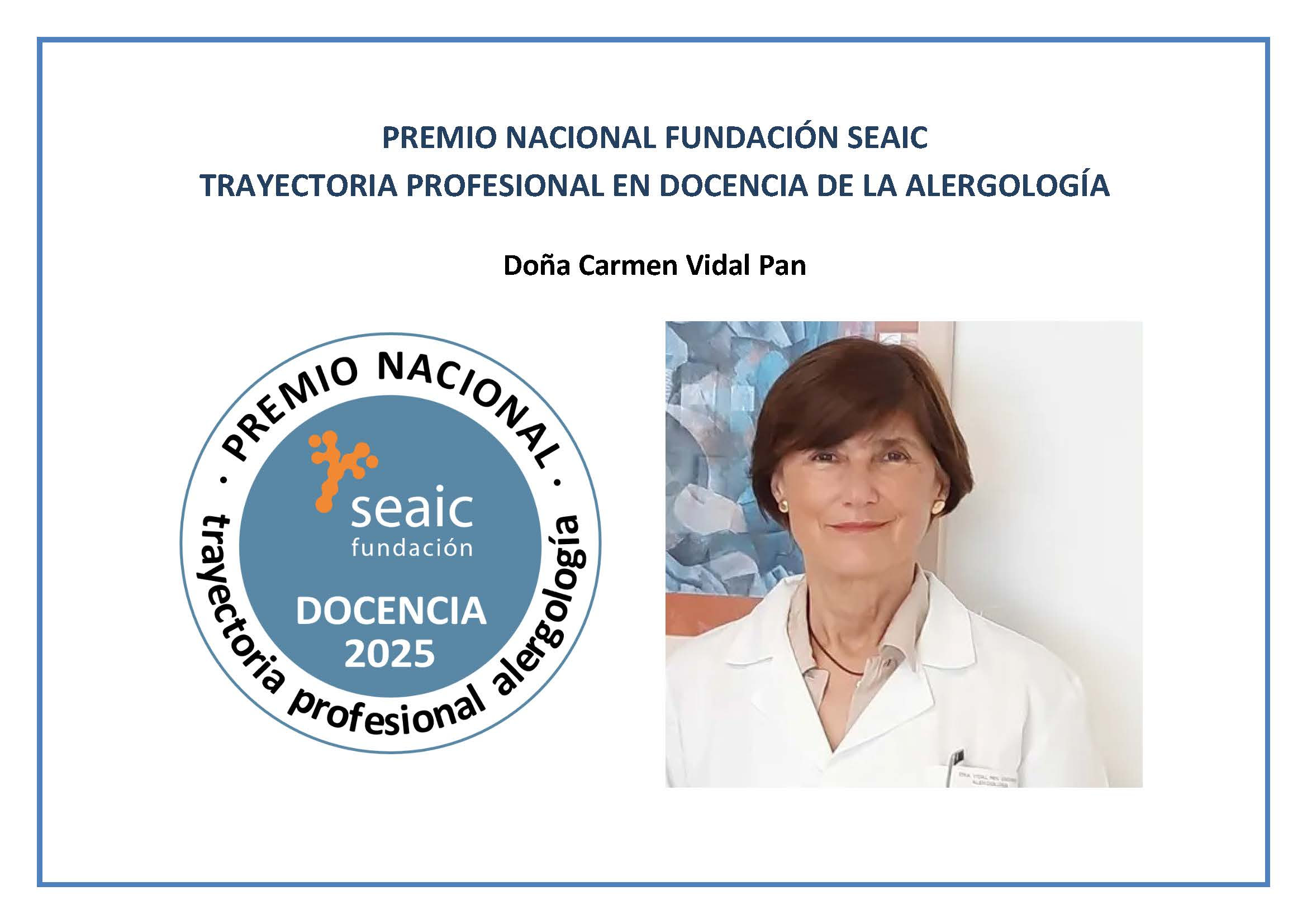 El jurado otorgó el premio a la Dra. Carmen Vidal Pan, destacando su excelente trayectoria docente y su compromiso con la formación y el desarrollo de la especialidad.